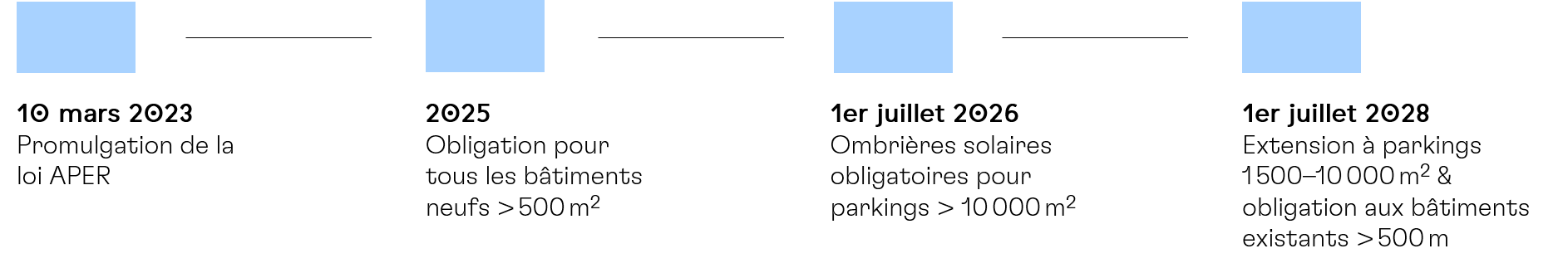 À partir du 1er juillet 2026 pour les parkings > 10000 m², et 1er juillet 2028 pour ceux entre 1500 et 10000 m².